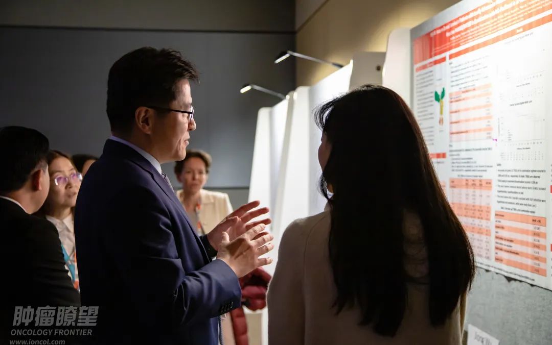 吴炅教授:确实,越来越多的同行在圣安东尼奥会议上分享了他们的研究成果,不仅有大会发言,还有壁报交流。我们团队在此次大会的壁报交流环节中有三项重要内容。首先,我在12月11日的“Poster Spotlight 3”环节展示了一项壁报——“PS3-08:Interim Overall Survival of Patients with Locally Advanced or Metastatic Triple-Negative Breast Cancer treated with First Line PM8002/BNT327 in Combination with Nab-Paclitaxel in Phase Ib/II Study”,并参与了讨论。该研究探讨了PM8002/BNT327(一种PD-L1/VEGF双抗)联合白蛋白结合型紫杉醇作为一线治疗局部晚期或转移性三阴性乳腺癌患者的中期总生存。2023年SABCS大会已经报道了该研究的初步结果,随着治疗时间的延长,患者数据愈发成熟。