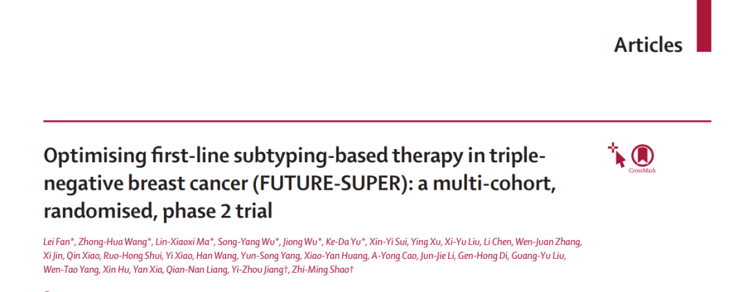 研究题目:Optimising first-line subtyping-based therapy in triple-negative breast cancer(FUTURE-SUPER):a multi-cohort,randomised,phase 2 trial