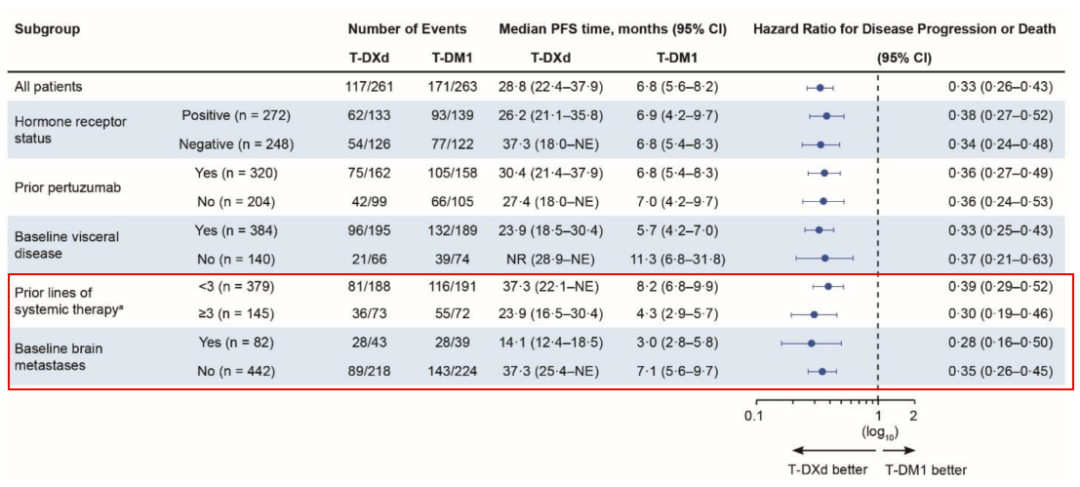 图4.DESTINY-Breast03研究PFS的亚组分析