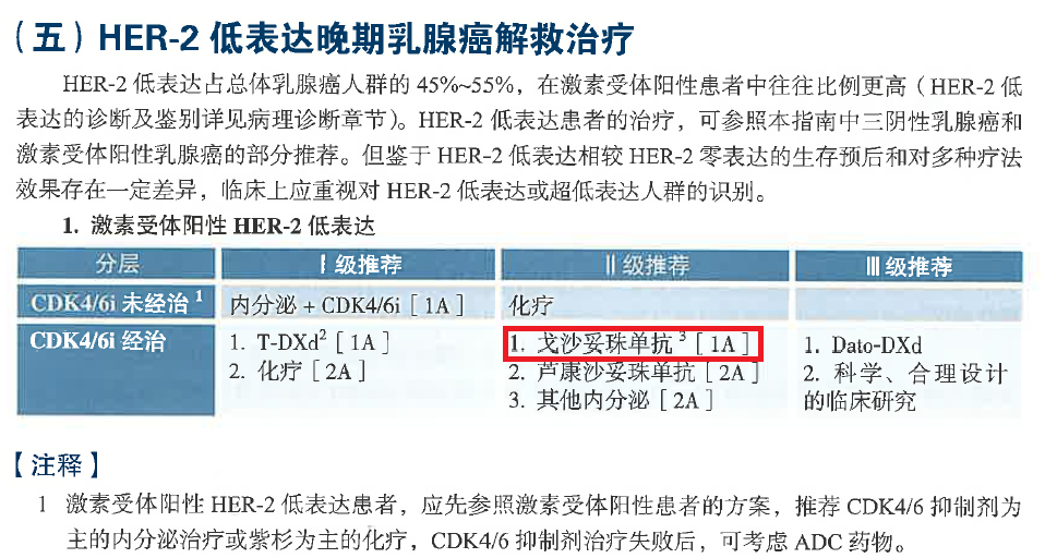 图3.《CSCO BC指南》对CDK4/6i经治HR+/HER2-低表达患者治疗推荐