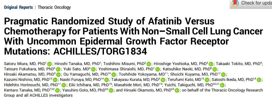 文献速递|JCO杂志重磅公布:阿法替尼一线治疗 EGFR 非经典突变肺癌可显著延长患者PFS