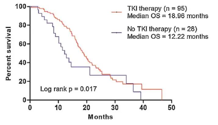 接受与不接受一代EGFR-TKI治疗的患者的OS数据