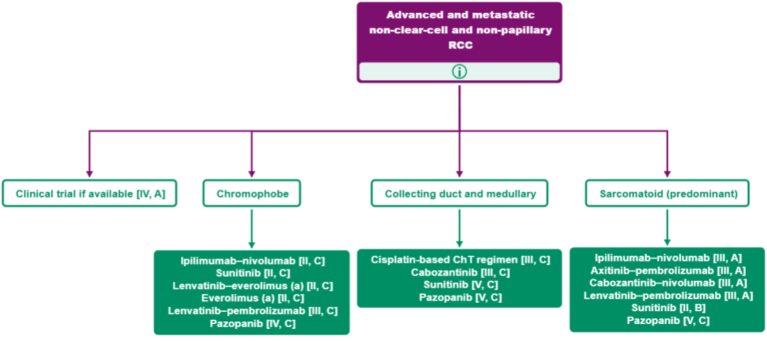 △ESMO RCC在线指南推荐的晚期和转移性nccRCC和non-RCC治疗流程
