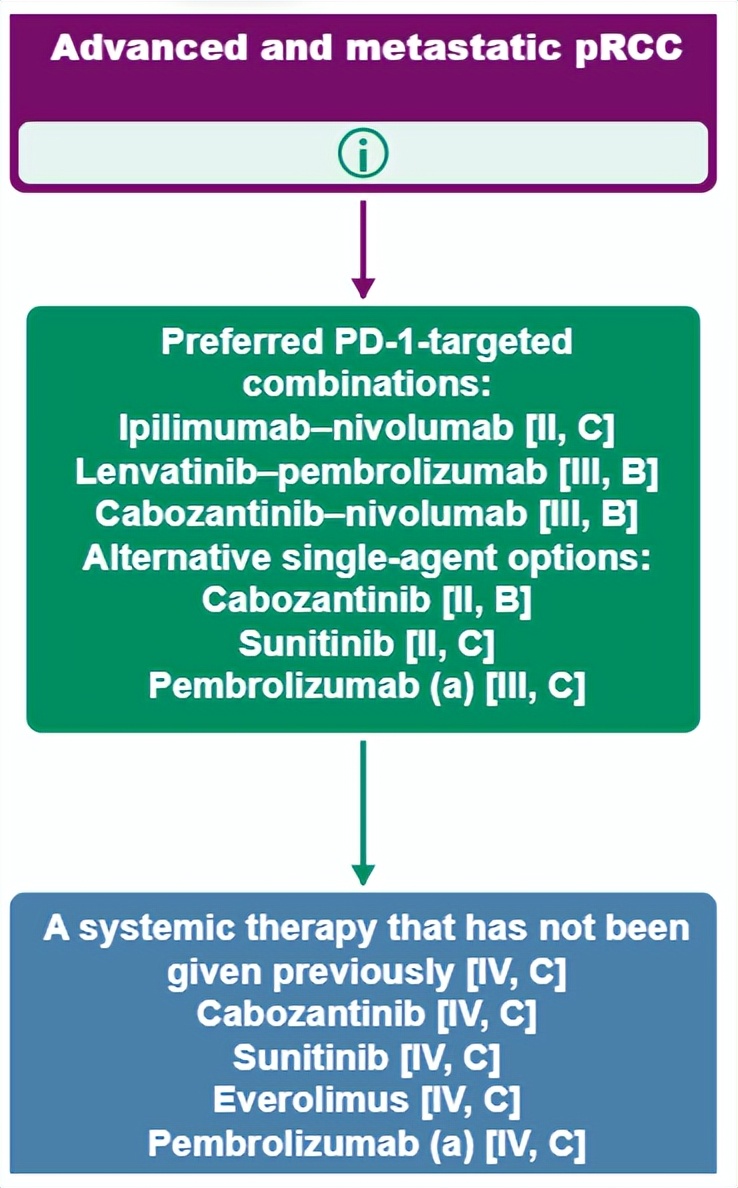 2.1卡博替尼是晚期乳头状肾细胞癌的首选一线VEGFR TKI单药疗法,无需额外进行分子检测[II,B]。