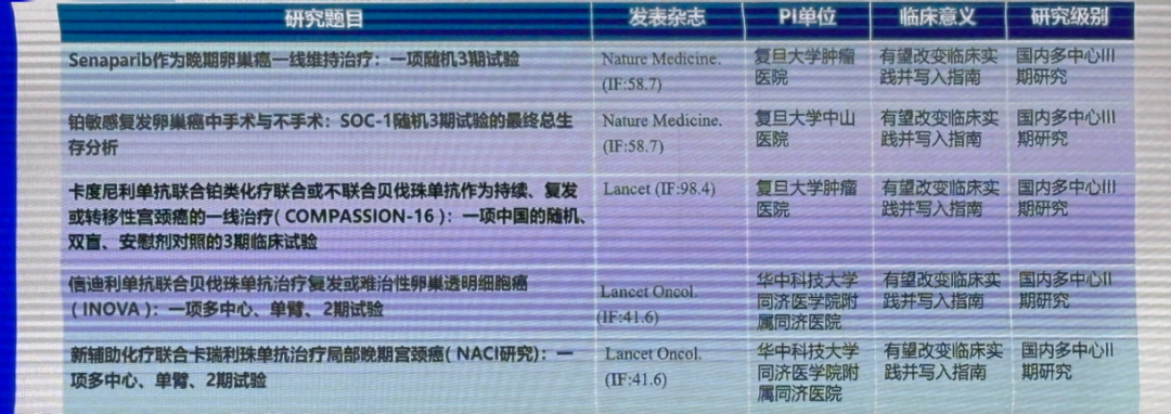 在2025年中国临床肿瘤学年度进展研讨会(BOC)暨Best of ASCO 2024 China会议上,《中国临床肿瘤学年度研究进展2024》正式发布,CSCO青委会专家针对不同瘤种领域的中国年度研究进展进行分享汇报。其中,河南省人民医院胡金龙教授、南方医科大学南方医院申鹏教授分享了妇科肿瘤部分2024年中国临床肿瘤学年度研究进展,包含5项主要研究进展以及9项值得关注进展。