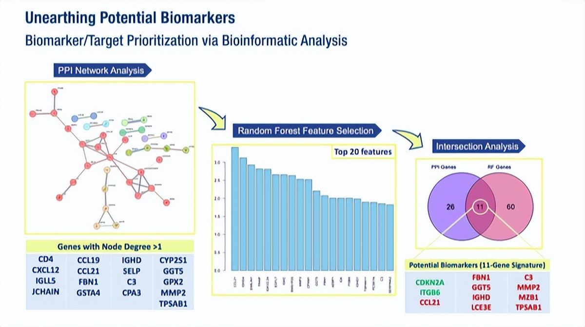 图:PPI网络分析与随机森林模型重叠的基因,揭示与治疗反应相关的生物学特征(2025年ESMO靶向抗癌治疗亚洲大会,摘要号94O)