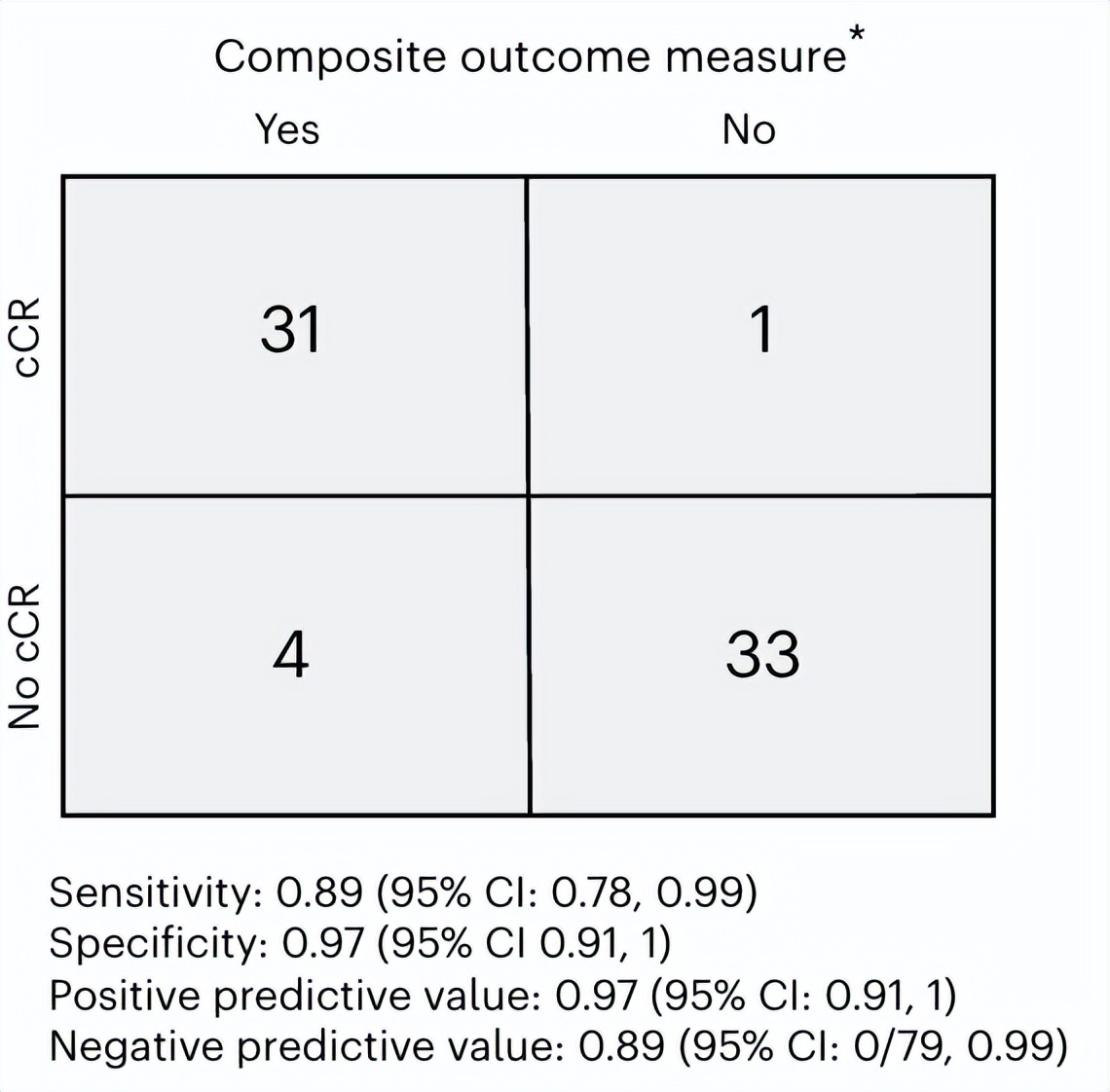 △2年无转移生存期或<ypT1N0的cCR阳性预测值
