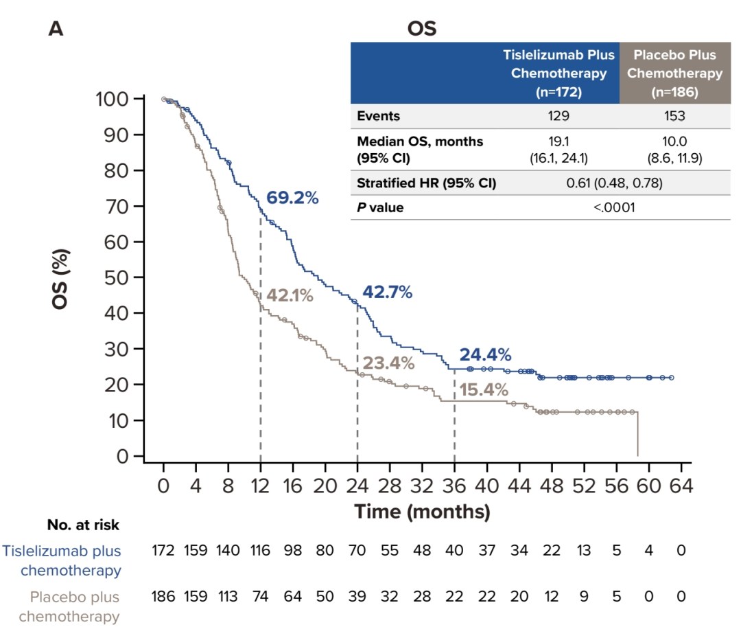 总之,在PD-L1 TAP≥5%的晚期/转移性ESCC患者中,替雷利珠单抗联合化疗方案的中位OS达19.1个月,较ITT人群在数值上展现了更佳的优势。在安全性方面,PD-L1 TAP≥5%晚期/转移性ESCC亚组数据与主研究3年随访数据保持一致。在此次亚组分析中,替雷利珠单抗联合化疗在疗效上呈现了持续改善趋势且未出现新的安全性信号,为临床实践带来了可靠的循证医学证据。