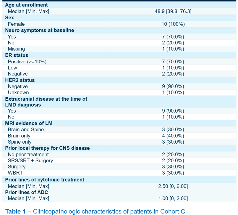 德达博妥单抗(Dato-DXd)治疗HER2阴性乳腺癌伴软脑膜病(LMD)患者的颅内活性:2期DATO-BASE试验C队列结果