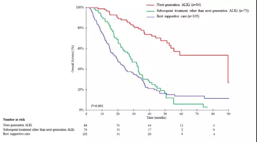 另一具有重要意义的研究是法国的一项回顾性研究(IFCT-1302CLINALK),ALK阳性患者耐药后分为最佳支持治疗、非ALK抑制剂、二代ALK抑制剂三组,二代ALK抑制剂治疗组(75%的患者选择塞瑞替尼)的中位OS达到了惊人的89.6个月,是迄今为止所有晚期非小细胞肺癌研究中报道的最长生存期。虽然是一个回顾性研究,但刷新了所有临床试验长期生存的数据。