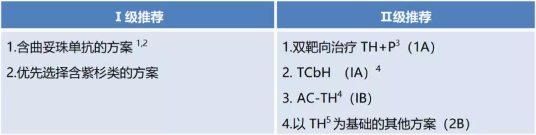 表1. 晚期HER2阳性乳腺癌一线治疗推荐