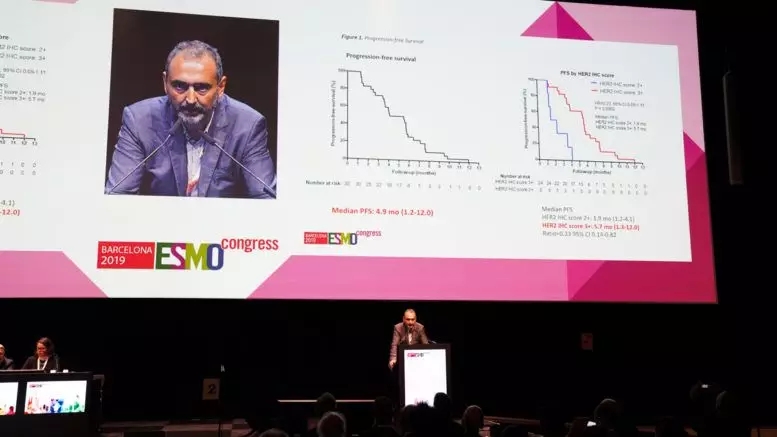 过去十年中,多项研究已将HER2确定为HER2阳性结直肠癌治疗的潜在靶点,靶向联合治疗对于HER2阳性结直肠癌的效果如何?研究人员一直在探索中。在西班牙巴塞罗那召开的2019年ESMO年会上,关于HER2扩增KRAS野生型转移性结肠直肠癌(mCRC)的双靶向治疗结果令人喜忧参半:HERACLES-B试验(摘要LBA35)[1]没有达到其主要终点,但TRIUMPH子研究GOZILA(摘要526PD)[2]以及MOUNTAINEER试验(摘要527PD)[3]报告了令人鼓舞的客观反应率(ORR)。