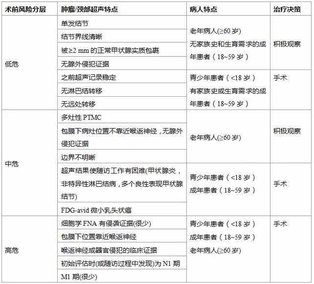 图2.不同年龄层PTMC术前危险分层临床决策框架的结果[1]