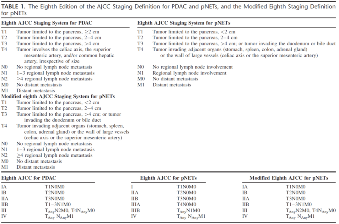 表1. PDAC和pNETs的第八版AJCC分期定义,以及改良的第八版AJCC分期定义