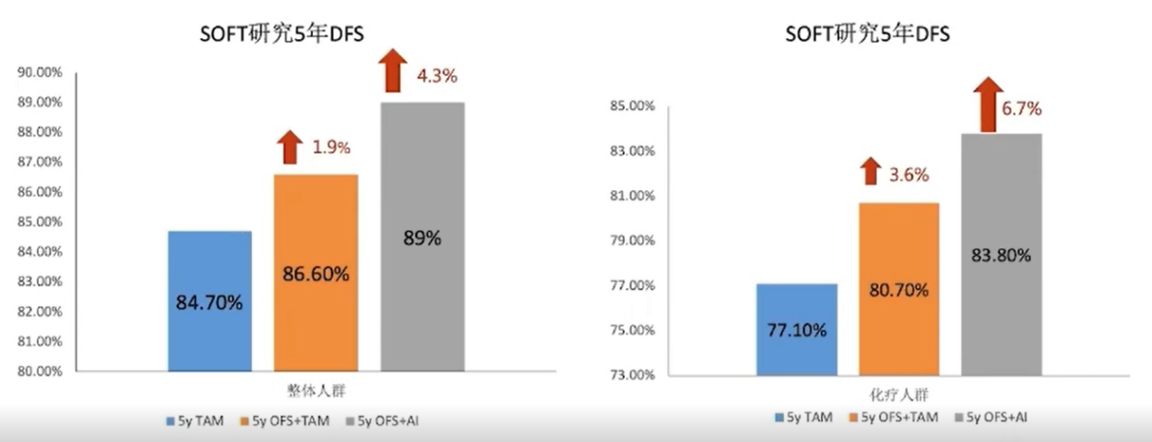 从SOFT研究中我们可以看出,5年TAM,5年TAM+OFS及5年AI+OFS三组数据对比,联合OFS获益更加明确。