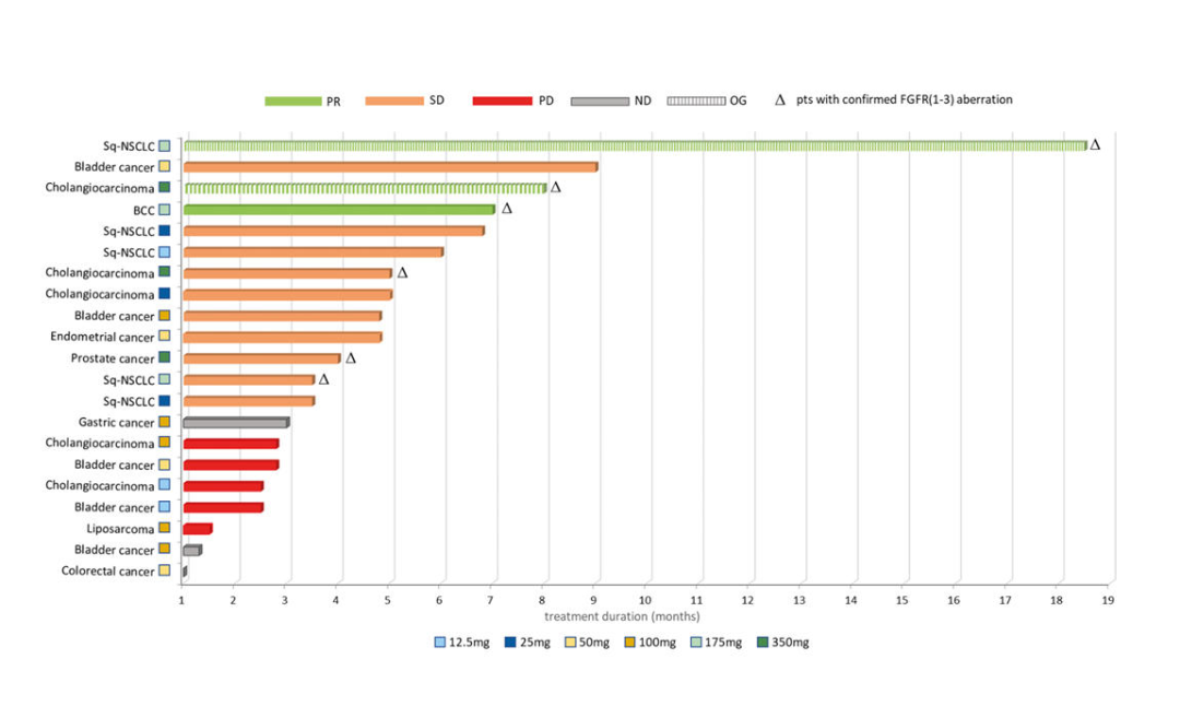 CPL304110治疗在所有患者(有肿瘤FGFR变异和未接受肿瘤FGFR筛查的患者)中的缓解率为14.3%,在有肿瘤FGFR变异的患者中,缓解率升至50.0%。10例患者实现病情稳定(SD)。