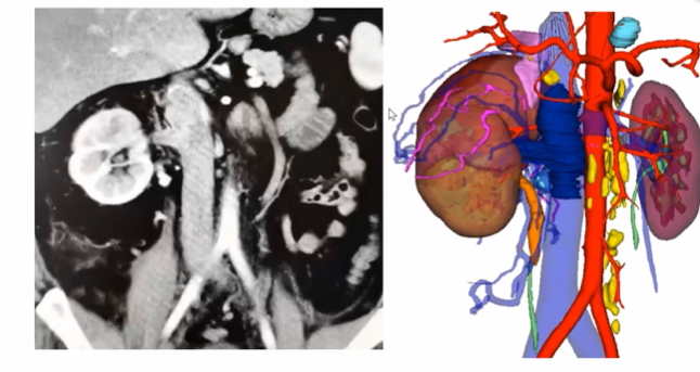 近日,在北京大学第三医院第20届泌尿外科微创技术研讨会上展示了一例复杂病例。该病例瘤栓非常坚固,与整个下腔静脉严重粘连,手术团队采取的策略是先离断下腔静脉,但离断以后发现断点部位瘤栓紧贴静脉壁,所以术中及时做了策略调整,采用先把左侧肾静脉与腔静脉汇合的地方进行缝合,之后重新打开腔静脉,取出瘤栓。