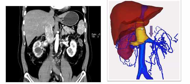 既往手术切除肾脏我们通常都会先处理肾动脉,但事实上有相当一部分患者可以先切断下腔静脉,再处理肾动脉,这样的病例在临床中也比较常见。如下图所示,当患者瘤栓充满血栓后,没有很好的空间去寻找肾动脉,此时我们可以先离断下腔静脉,这样就有足够的空间,再去取瘤栓和切断肾动脉就会变得简单便捷。当前这种模式本科室也已成为一种常规的术式,通过这种方式可以简化手术步骤,同时也可以很好地处理掉肾动脉。